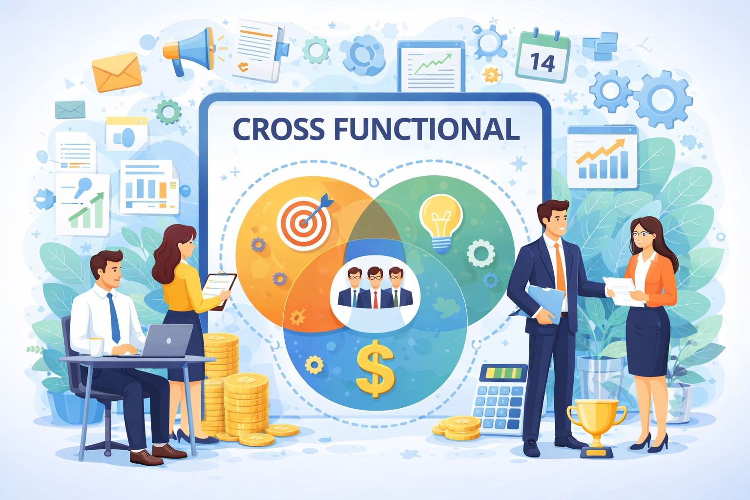 Cross Functional คือ การทำงานร่วมกันของพนักงานจากหลายสายงานหรือหลายฝ่าย โดยแต่ละคนมีความเชี่ยวชาญที่แตกต่างกัน แต่ทั้งหมดทำงานภายใต้เป้าหมายเดียวกัน เพื่อแก้ปัญหา พัฒนางาน หรือขับเคลื่อนโครงการที่มีความซับซ้อน ซึ่งไม่สามารถสำเร็จได้ด้วยฝ่ายใดฝ่ายหนึ่งเพียงลำพัง