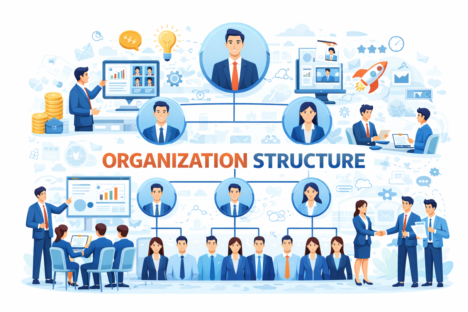 โครงสร้างองค์กร คือกรอบการจัดวางบทบาท หน้าที่ ความรับผิดชอบ และสายการบังคับบัญชาภายในองค์กร เพื่อให้การทำงานเป็นระบบ ลดความซ้ำซ้อน และเอื้อต่อการตัดสินใจอย่างมีประสิทธิภาพ โครงสร้างที่ดีจะสะท้อนถึงทิศทาง กลยุทธ์ และรูปแบบการดำเนินงานขององค์กรได้อย่างชัดเจน และทำให้พนักงานเห็นเป้าหมายเป็นภาพเดียวกัน
