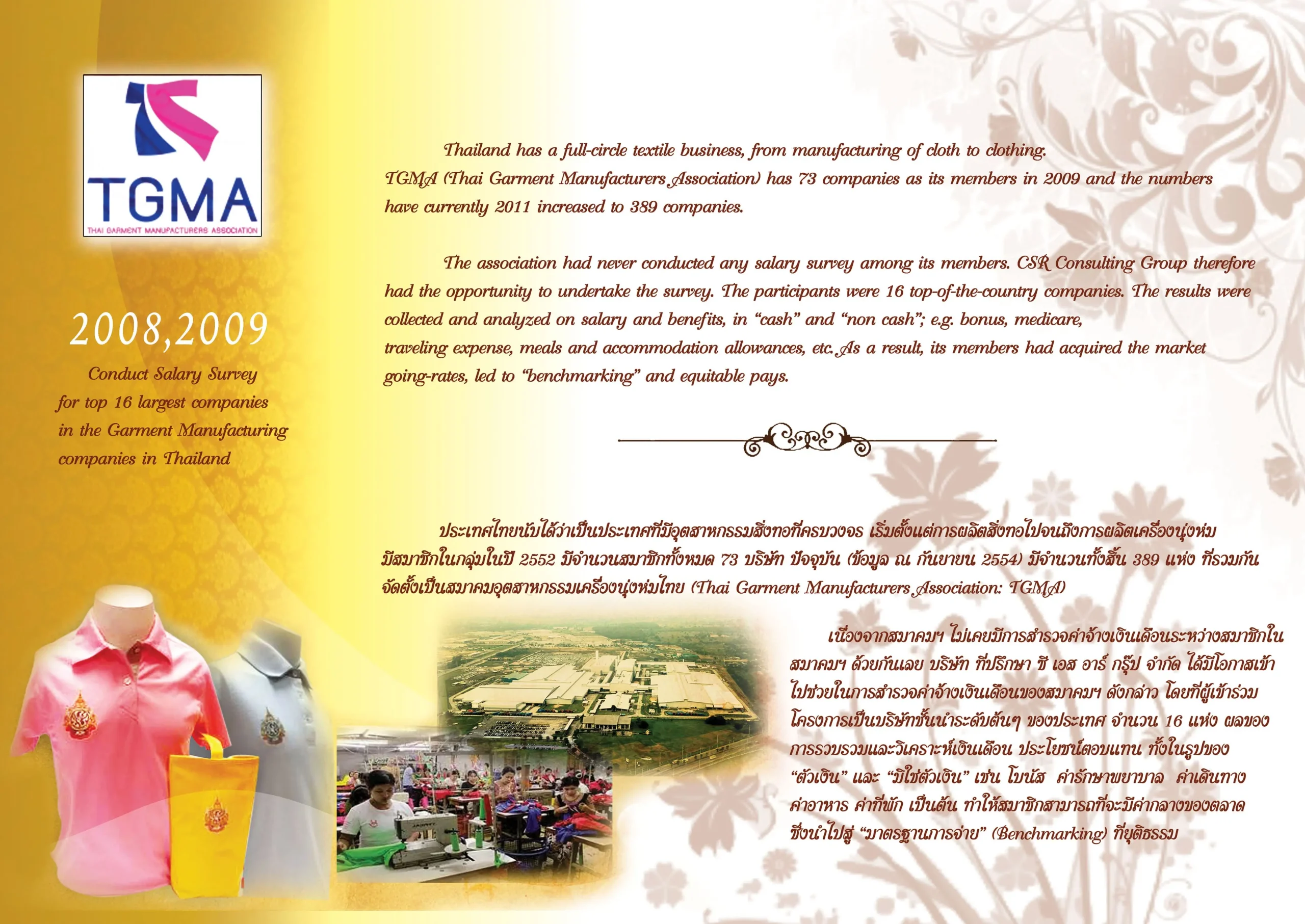 – Conduct Salary Survey for top 16 largest companies in the Garment Manufacturing companies in Thailand